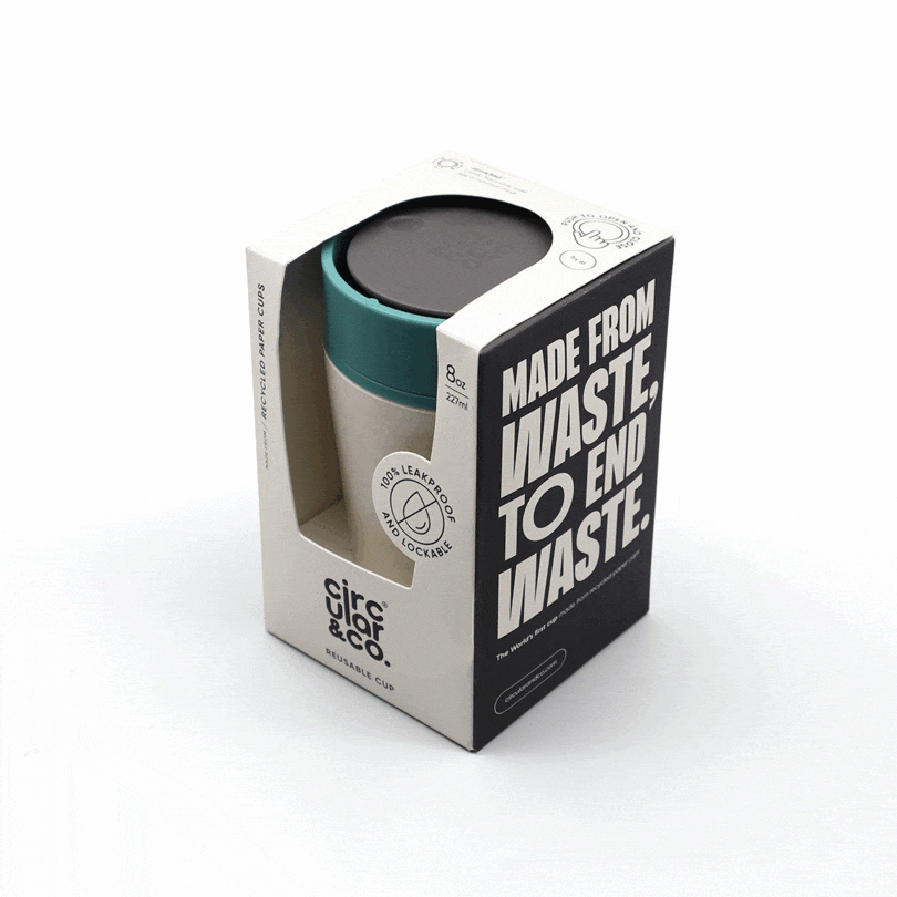 Circular Cups are the world’s first circular solution for reusable coffee cups. The Circular Cup is made from 6 recycled single-use paper cups, is designed for 10 years of use, and 100% recyclable at the end of life, contributing to a circular economy for coffee cups. Designed with practicality and circularity in mind, our sustainable travel mug is 100% leakproof with locking lid mechanism, providing peace of mind whilst you’re on the go. Circular Cups unique push lid mechanism minimises spills and offers one-hand opening. Enjoy the full coffee flavour with 360-degree drinking. Every purchase of a Circular&Co. Reusable Coffee Cup funds a sustainable solution to global waste. Packed in a gift box.