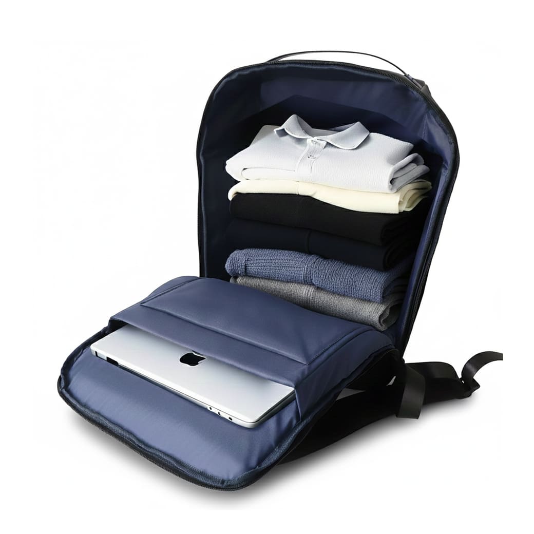 The HALIFAX deluxe backpack is a 15.6" laptop backpack with added secure pocket for tablets/electronics and an aesthetic blue inner lining. Additionally includes a front pocket, 2 expandable side pockets, premium carry handle, padded shoulder straps and a trolley attachment. Anti-theft design with hidden zippers on front and main compartments.