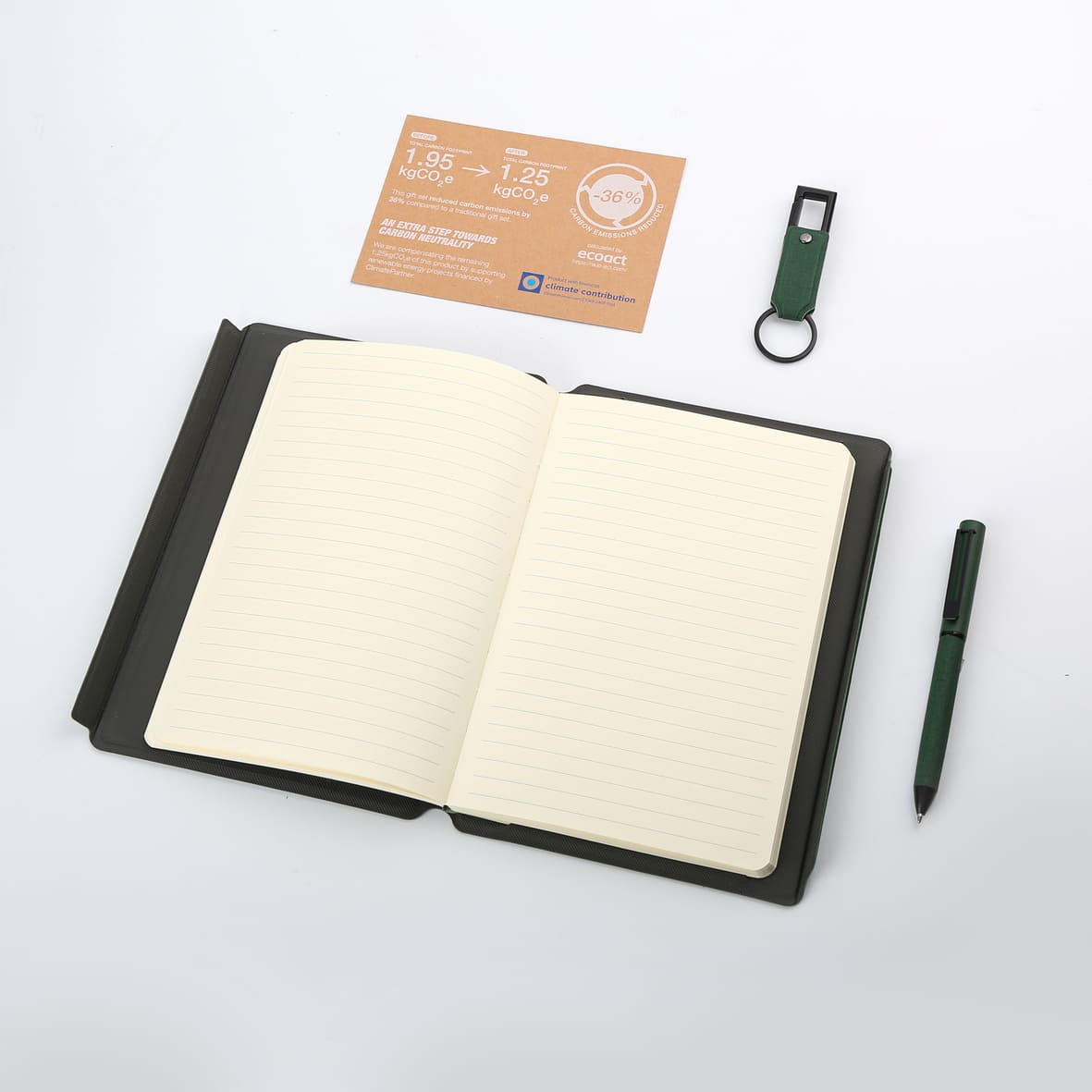 LENZEN - CHANGE ZERO Sustainable Gift Set with Refillable Notebook, Pen & USB Keychain - Green