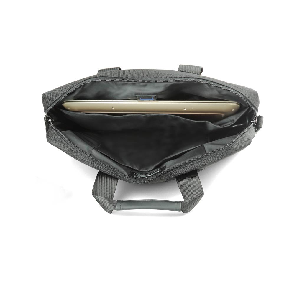 Santhome® CHANGE Laptop Office Bag made from high-end durable 1680D recycled rPET (certified by GRS) and stylish leather components. Convenience pockets in the front for quick access of mobile phones, documents, etc. Each recycled bag saves 32L of water, reuses 12 plastic bottles and makes an impact by contributing to Water.org - a global NGO that provides millions in need with access to safe water and sanitation. By giving to Water.org, you are giving a GIFT THAT GIVES BACK.