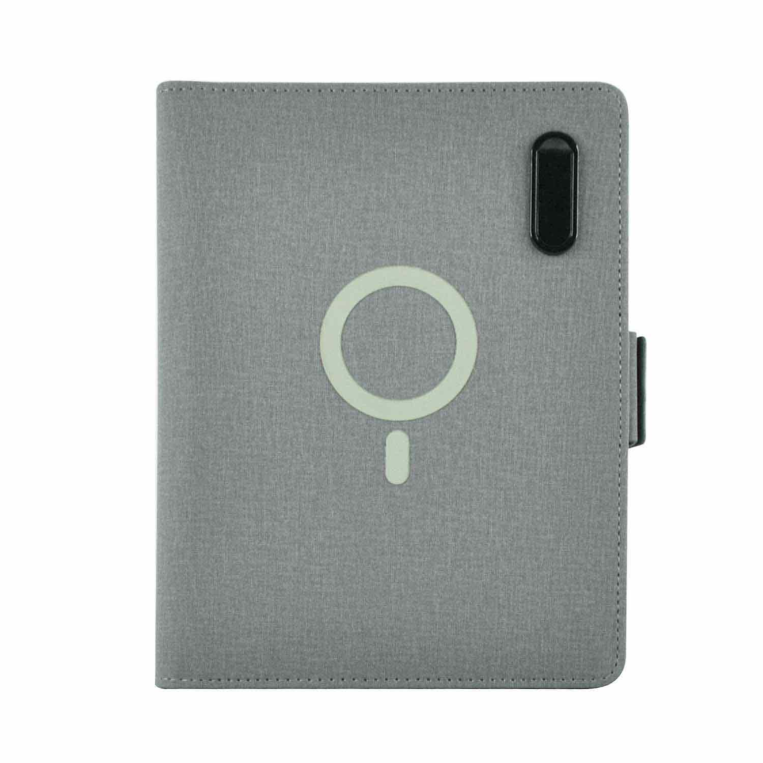 MagSafe Smart Notebook Portfolio combines design elegance and latest magnetic charging technology. With an impressive 8000 mAh powerbank, 10W MagSafe magnetic wireless charging, 32GB USB in-built flash drive, numerous ports, card pockets, phone/tablet pocket, pen loop, phone vertical/horizontal stand and an elegant refillable A5 notebook with ivory paper. Snap your phone (iPhone 12 or higher) to the wireless charger and the phone will align perfectly with the magnets inside. The 10W wireless charger is compatible with all QI devices (Iphone 8 and up and Android devices). Packed in an elegant sliding gift box.