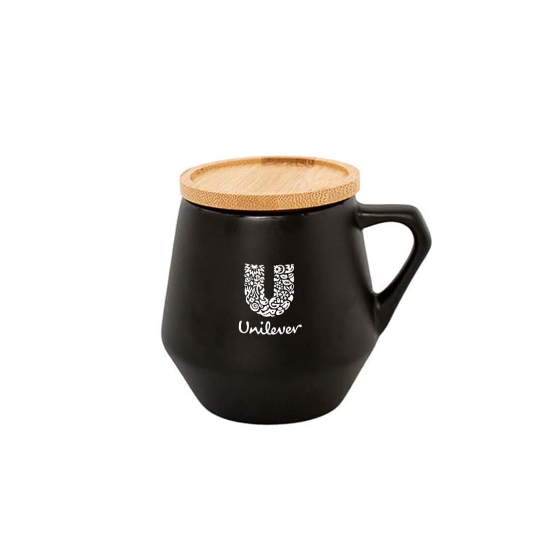 Stylish matt-finish ceramic mug with dual function bamboo lid/coaster. The lid can double up as a coaster for the mug. Dishwasher safe. Capacity: 300ml. Packed in a kraft gift box