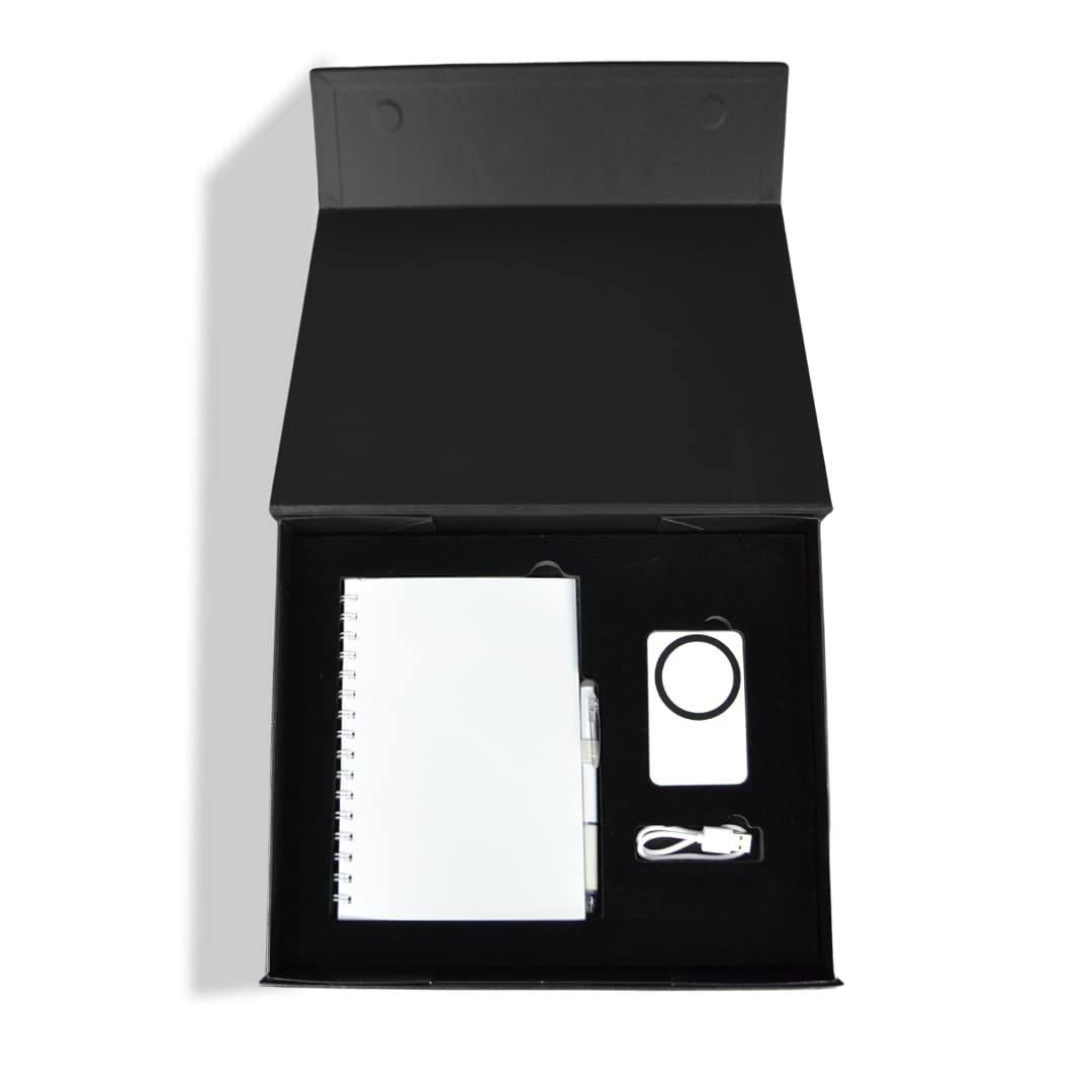 A selection of innovative, tech-savvy accessories made to simplify and enhance everyday life. Contents: GSSN 9554 - Santhome® Eternity - The Reusable Notebook & Pen Set – White ITWC 1216 - TARRENZ - Giftology 5000 mAh Magnetic Wireless Powerbank - White GSPB 9516 – Big Gift Box (Box Size: 35.5 x 28 x 10.5cms)