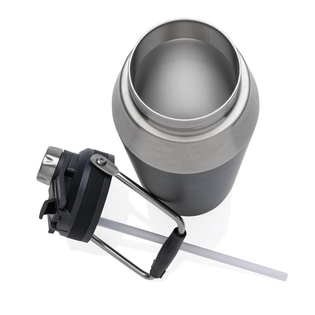 The ultimate stainless steel bottle for on-the-go versatility. The lid has a dual function that has both a flip top straw and screw cap so you can choose how you want to drink from the bottle! The bottles features a large top handle for easy carrying. Double wall vacuum insulated stainless steel keeps beverages hot for up to 5 hours or cold for up to 15 hours. A powder coat finish creates a highly durable and premium exterior. Capacity 1000ml. BPA free.