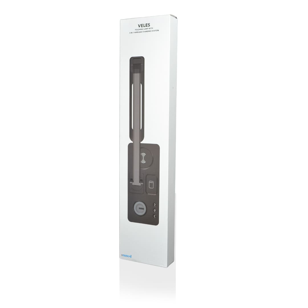 Veles is a Smart Light with 3-in-1 wireless charger simultaneously charging your smartphone, earpods and smart watch, compatible with iOS and Android devices. Veles is USB-C powered with wireless output of 15W for Mobile phones + 3W Wireless charging for TWS earpods. For smart watches, Veles contains a foldable holder to place any type of magnetic charger for smart watches. Comes with 3 LED light settings
