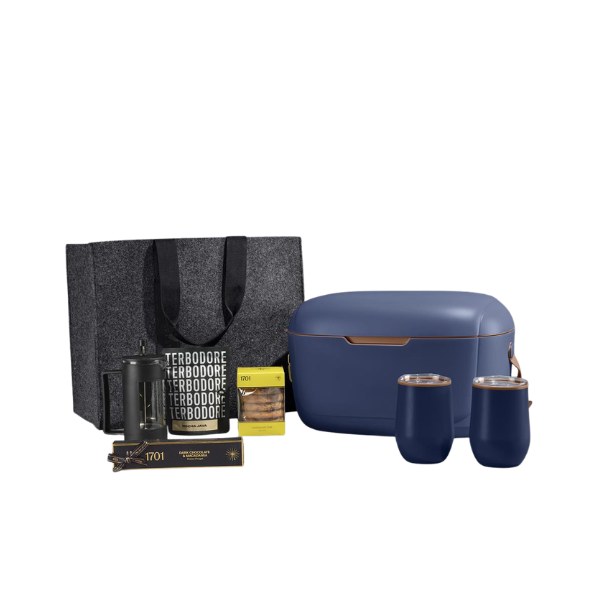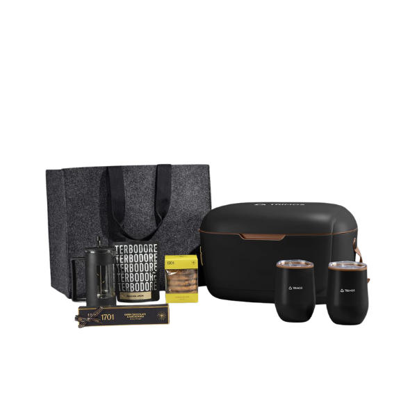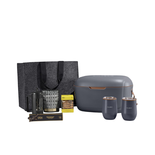 Expertly curated and presented in a luxury 12-liter cooler box, the entire set is housed in a durable Dark Grey RPET felt gift bag.