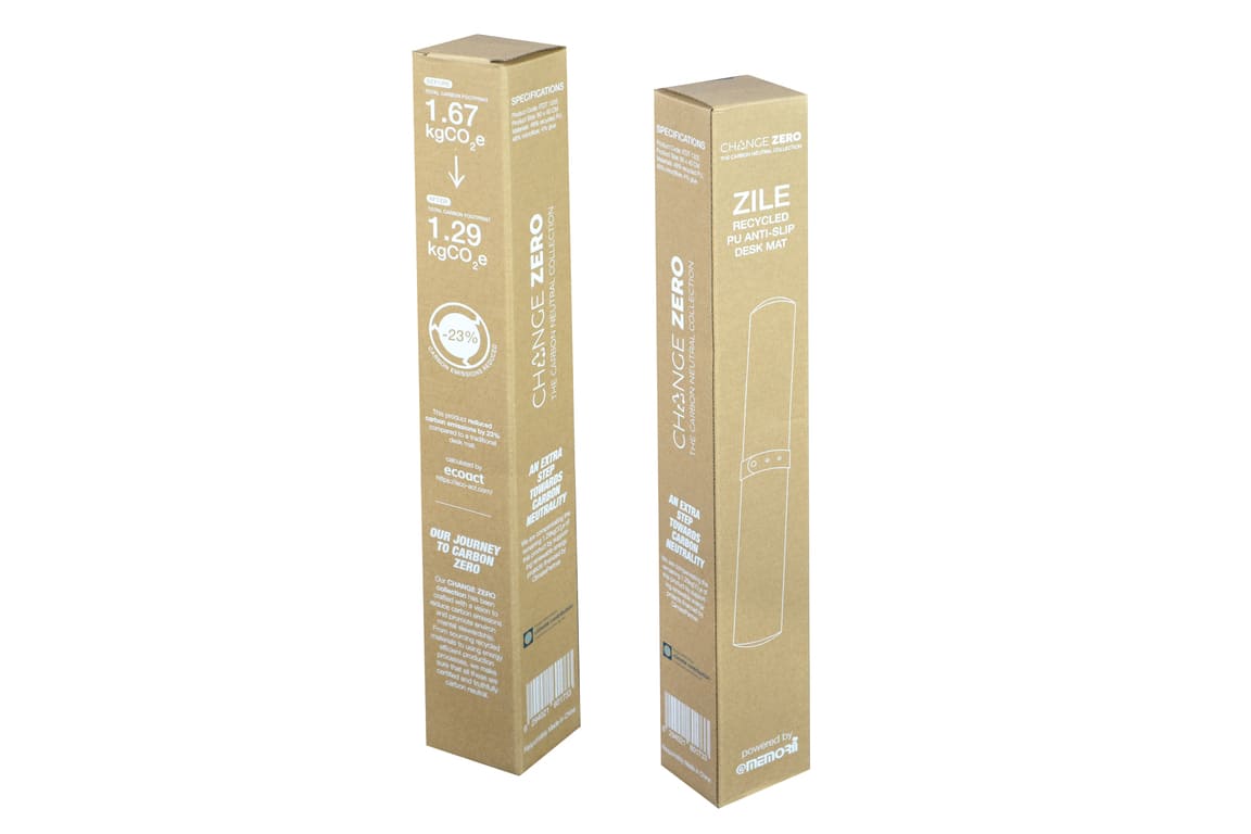 Spacious foldable desk pad that elevates your office workspace. Made using sustainable RCS-certified recycled PU with anti-slip base. Size: 80 x 40 cms. Zile is a CHANGE ZERO product, which means that it is developed with a net zero carbon footprint - By using RCS-certified recycled PU materials, we reduce 23% carbon emissions from material use (verified by ecoact®). Further, we offset the balance 1.29 kgCO2eq per unit by financing renewal energy projects through Climate Partner, making it a carbon-zero product. Packed in an elegant gift box.